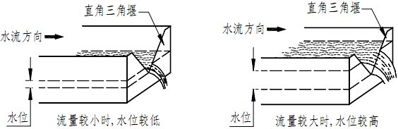 3.2.2量水堰槽通水后,水的流态要自由流。三角堰、矩形堰下游水位要低于堰坎