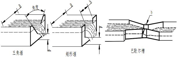 常用的量水堰槽有,直角三角堰、矩形堰和巴歇尔槽(如上图)