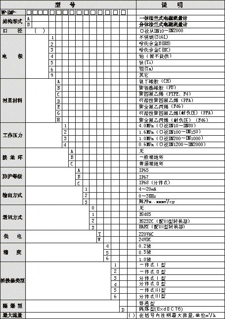 WP-EMF-A/B(一体式/分体式)法兰式电磁流量计技术参数