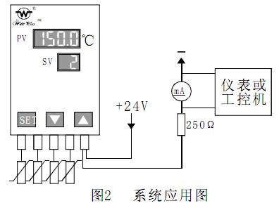 注:本产品为水泥行业等专用温度检测仪,它将每路输入信号进行比较后,选择最高测量温度。那一路作为变送(4~20)mA电流输出。且变送输出与供电电源只需共用两根线即可。