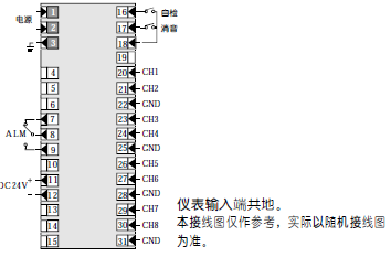 报警方式:音响报警:220V/8W电铃(用户自备),蜂鸣器(仪表内自带)闪光报警当前报警通道闪烁。